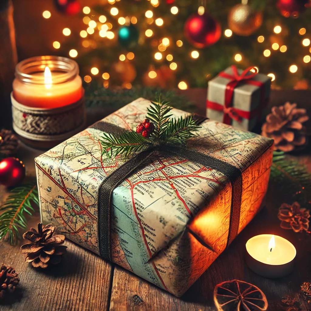 Vieilles cartes routières = déchets? Non non, vieilles cartes routières = matière première disponible qui attend patiemment d’être transformée pour éviter des achats neufs. Voilà comment on fait des économies et on préserve des ressources tout en retardant le moment où des objets finiront à la poubelle. Cet emballage cadeau de récupération permet aussi d’ajouter une touche d’originalité sous le sapin.