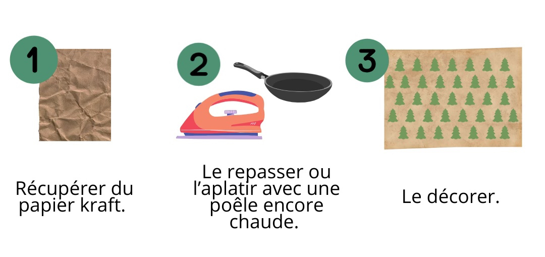 - Évite le papier cadeau plastifié ou pailleté : si vraiment tu ne peux pas te passer de papier cadeau opte pour du papier kraft qui est facilement recyclable (il faut le déposer dans les points de collecte, souvent à côté du verre). Si possible choisi celui qui porte un label environnemental (FSC, PEFC, EU ecolabel, Ange Bleu, Cradle To Cradle, etc) ou bien du papier recyclé ou imprimé avec des encres végétales.