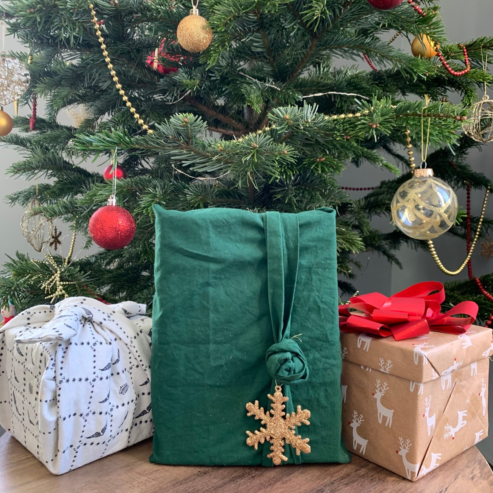 On trouve des furoshikis neufs à l’achat dans des tissus festifs pour se rapprocher des papiers cadeaux à motifs. Voici la sélection de la boutique zéro déchet Machat Atelier. Ils sont disponibles en plusieurs tailles pour s’adapter à toutes les tailles de cadeaux. On peut aussi se diriger vers les couturières et petites créatrices autour de chez soi. Si ça représente un petit budget à l’achat, cela est vite rentabilisé quand on pense qu’on pourra les utiliser de nombreuses années pour diverses occasions (Noël mais aussi anniversaires, fêtes des mères, fêtes des pères, cadeaux spontanés, etc). On peut aussi choisir de l’offrir au destinataire pour un cadeau 2 en 1 pour qu’elle ou lui le réutilise à son tour.